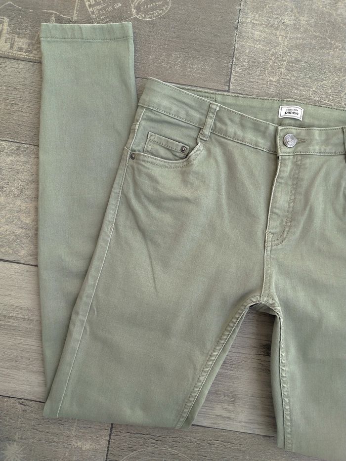 Pantalon slim kaki - Pimkie • Hauteur taille standard • 5 poches • Taille 36 ➥ Très peu porté, 2 ou 3 fois ! Comme neuf • Tour de taille 75 cm • Profondeur de l'avant 22 cm • Longueur 94 cm