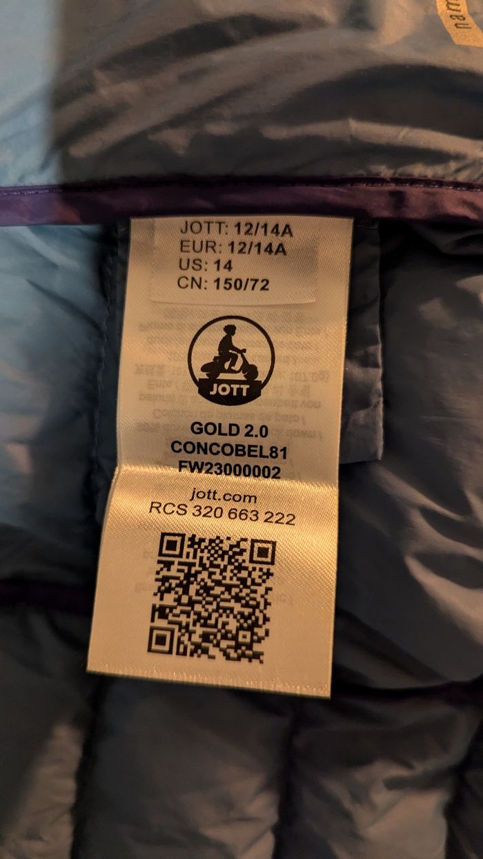 Doudoune JOTT originale, modèle Gold 2.0, couleur bleu, taille 12/14 ans. Légère, chaude et confortable, parfaite pour l’hiver et la mi-saison. ✅ Capuche amovible ✅ Fermeture zippée ✅ Coupe ajustée ✅ Logo JOTT sur la manche ✅ Très bon état, peu portée ✅ Étiquettes visibles (authentique) 📏 Taille : 12/14 ans 👦👧 Mixte 💨 Facile à porter et à transporter 📦 Envoi rapide et soigné