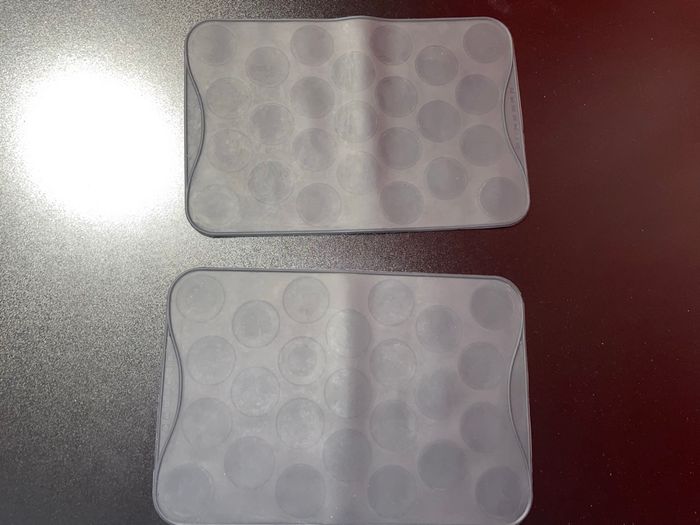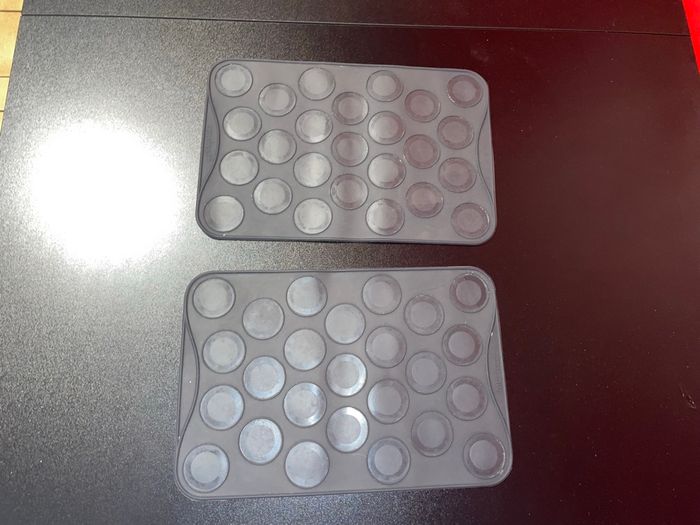 Lot de 2 tapis en silicone noir, parfaits pour réaliser des macarons réguliers 🍫 Très bon état, souples et faciles à nettoyer. Chaque tapis comporte des empreintes circulaires pour un rendu professionnel 👩‍🍳 Idéal pour les passionnés de pâtisserie ou les débutants motivés 🎯 #macarons #tapispatissier #ustensilescuisine #patisserie #accessoirecuisine #accessoirepatisserie