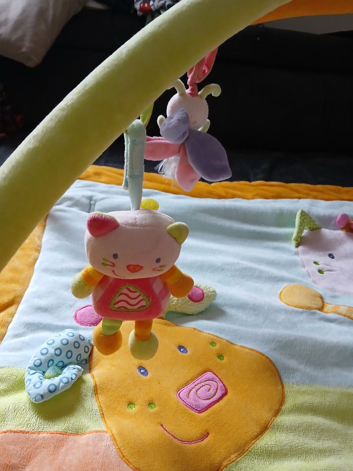 Réductions activées Tapis d éveil de la marque babysun Les arches se clipsent Il y a 4 suspensions N ayant plus l attache sur 1, je l ai attaché avec 1 ruban ( photo 6) Bon état #tapisdeveil #tapiseveilavecarches