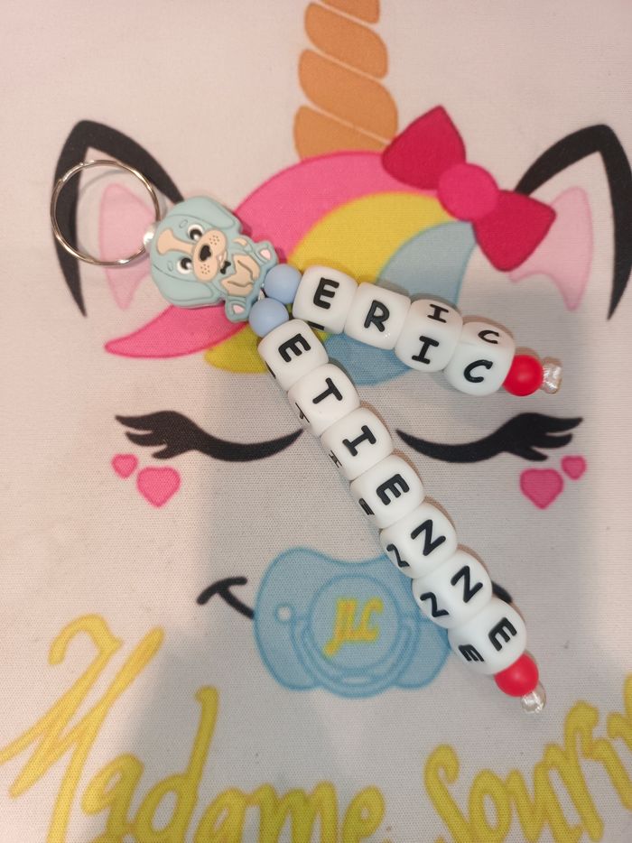 Un porte clés Chien pour accrocher vos clefs en toute sécurité, composé de perles en silicone alimentaire et/ou bois naturel. 100% personnalisable, énormément de choix de clips, perles, etc… Envoyez-moi un message afin de créer main dans la main votre accessoire idéal. Une photo du prototype de celui-ci vous est envoyé pour validation avant envoi.