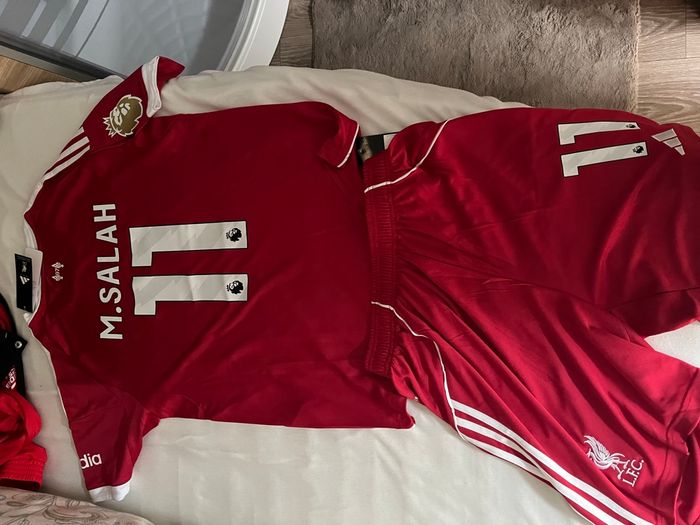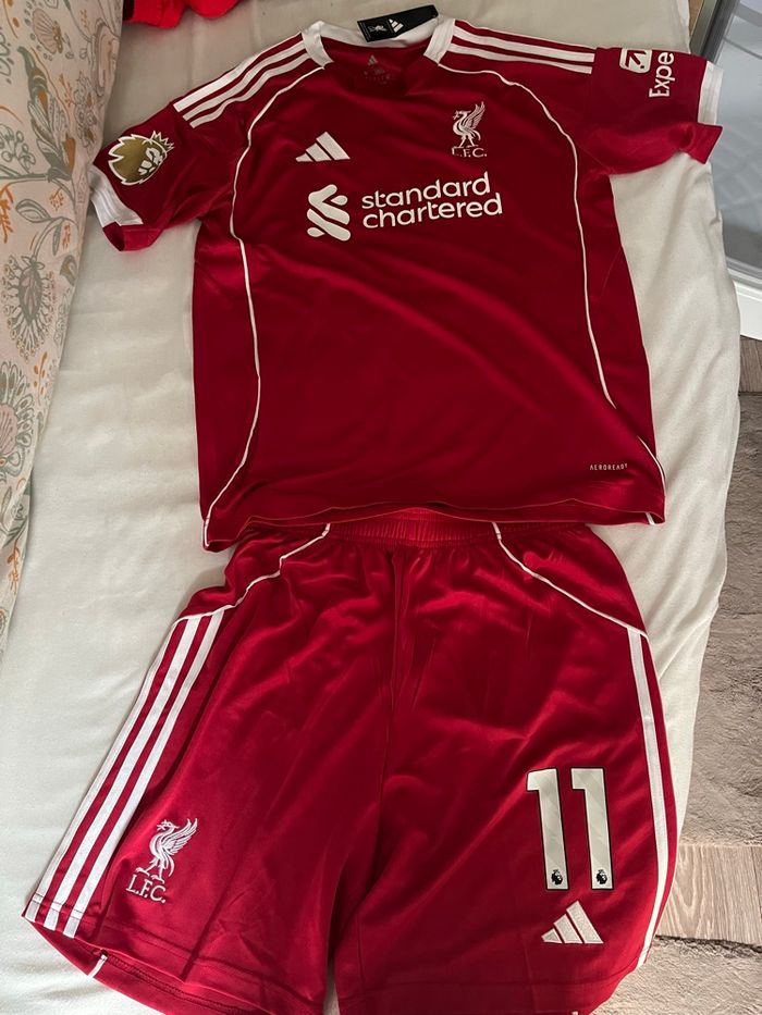 Maillot et short Liverpool domicile saison 2025-2026 taille L floqués M.salah 11 + patch premier league