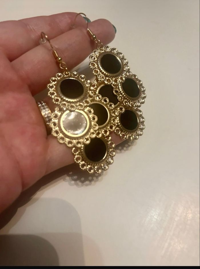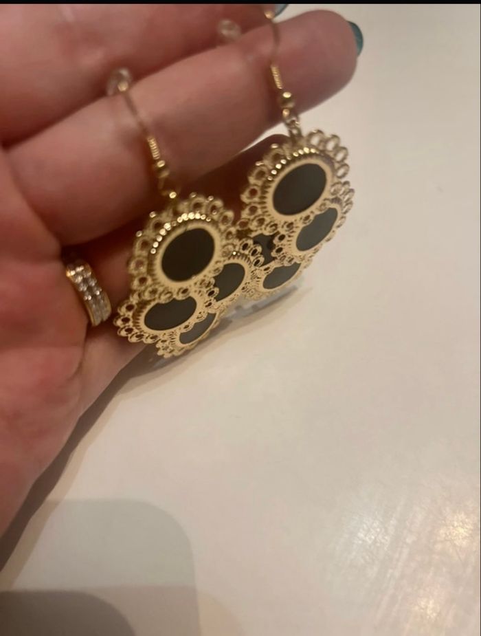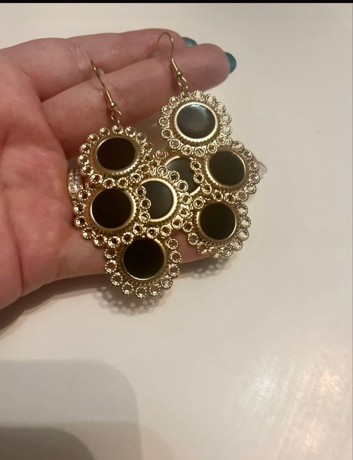 DRESSING PROPOSANT RÉDUCTIONS 💶😀 Superbes boucles d’oreilles pendantes pour femme. Pour oreilles percées. Couleurs : Doré et Noir DIMENSIONS 7,5 cms de hauteur ✨NEUVES. Jamais portées.✨ Prix : 3€65 Je dépose DANS LA MESURE DU POSSIBLE les colis 📦 le lendemain du paiement. 😉 MAIS SI CEST UN ENVOI URGENT, MERCI DE ME LE PRÉCISER ☺️. N’hésitez pas à jeter un coup d’👀 à mes évaluations. 🙂