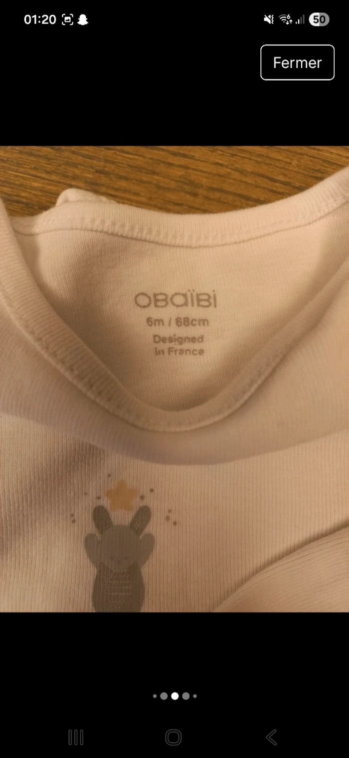 Lot de 6 bodies: 👕 Marques : - Obaïbi – 6m / 68cm 🇫🇷 - Pommette – 6m / 67cm 🐻 - Inextenso – 6m / 66-71cm - TEX Baby – 6m ⭐ - Sweet & Soft – indiqué 50/56 mais taille grand, équivalent 6 mois 👶 - Body sans marque visible avec illustration "Fly to the moon" 🎈 💡 Tous les bodies sont en bon état, doux et confortables pour bébé. Motifs adorables : étoiles, ballons, animaux… parfaits pour le quotidien. 🧼 Lavés avec soin, prêts à être portés. Idéal pour compléter la garde-robe de bébé. Envoi rapide 📦 et soigné 💌 📌 #bodybebe #6mois #lotbebe #bodymixte #bodygarcon #bodyfille # #vetementbebe3mois #bonplanbebe #maman