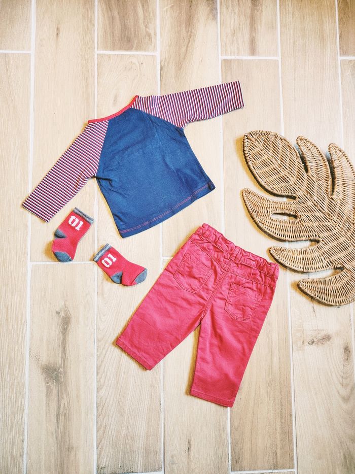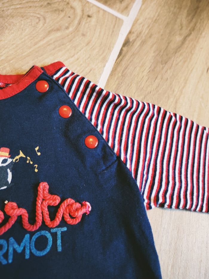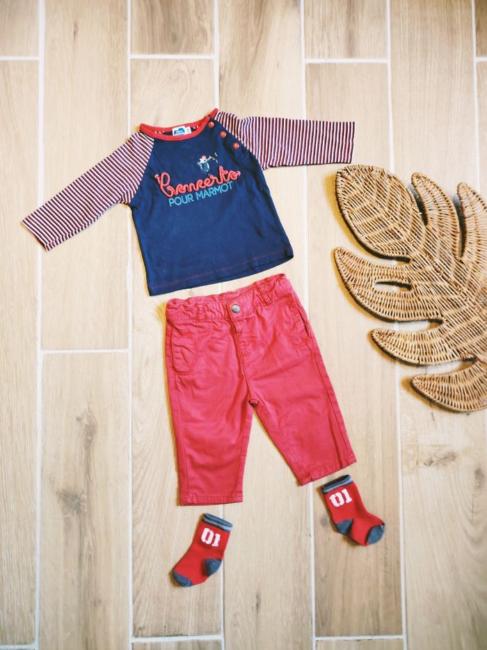 🧒🏻Orchestra /Mots d'enfants - Ensemble Pantalon toile rouge et t-shirt bleu marine manches marinières - Taille 6 mois REF11 🎀 Ensemble pep's pour égayer la journée de bébé avec 👖Un superbe pantalon en toile ✨Coloris rouge ✨Taille élastique avec passants pour ceinture ✨2 poches à l'avant et 2 à l'arrière 👕Un t-shirt manches longues ✨Coloris bleu marine avec inscription Noeud/lacet en relief "Concerto pour Marmot" ✨Manches longues rouges et blanches à rayures ✨3 boutons sur l'épaule pour faciliter l'enfilage 🧦Une paire de chaussettes assortie à la tenue ✨Coloris rouge avec inscription 01 ❇️N'hésitez pas à créer un lot pour économiser sur les frais de port❇️ Ensemble bébé, vêtement automne, couleur automne, pantalon garçon, ensemble garçon, ensemble 3 mois, Lot vêtements, vêtements bébé pas cher, pantalon côtelé