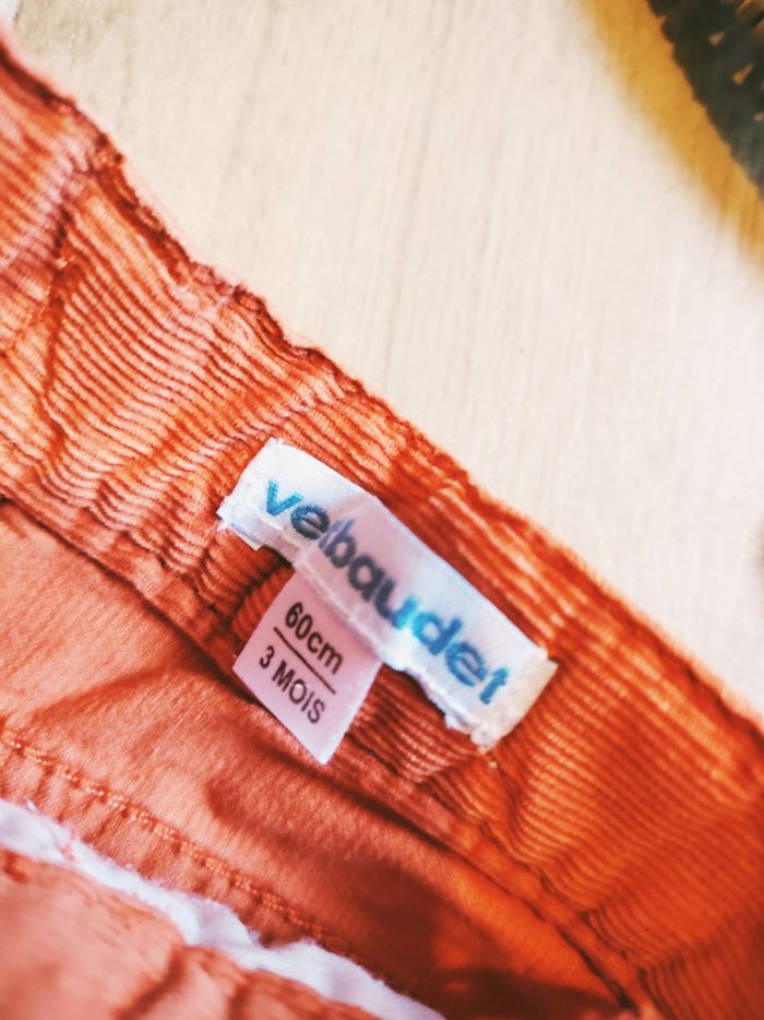 🧒🏻Vertbaudet /Baby filou  Ensemble Pantalon velours orange et t-shirt inscription - Taille 3mois - photo numéro 5