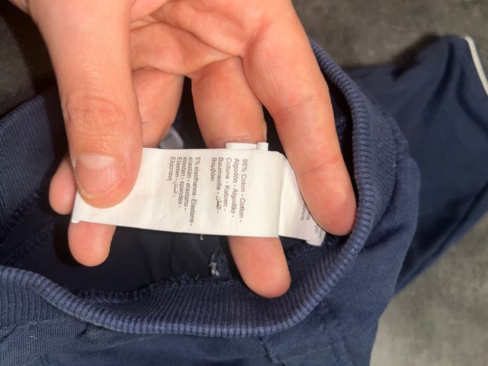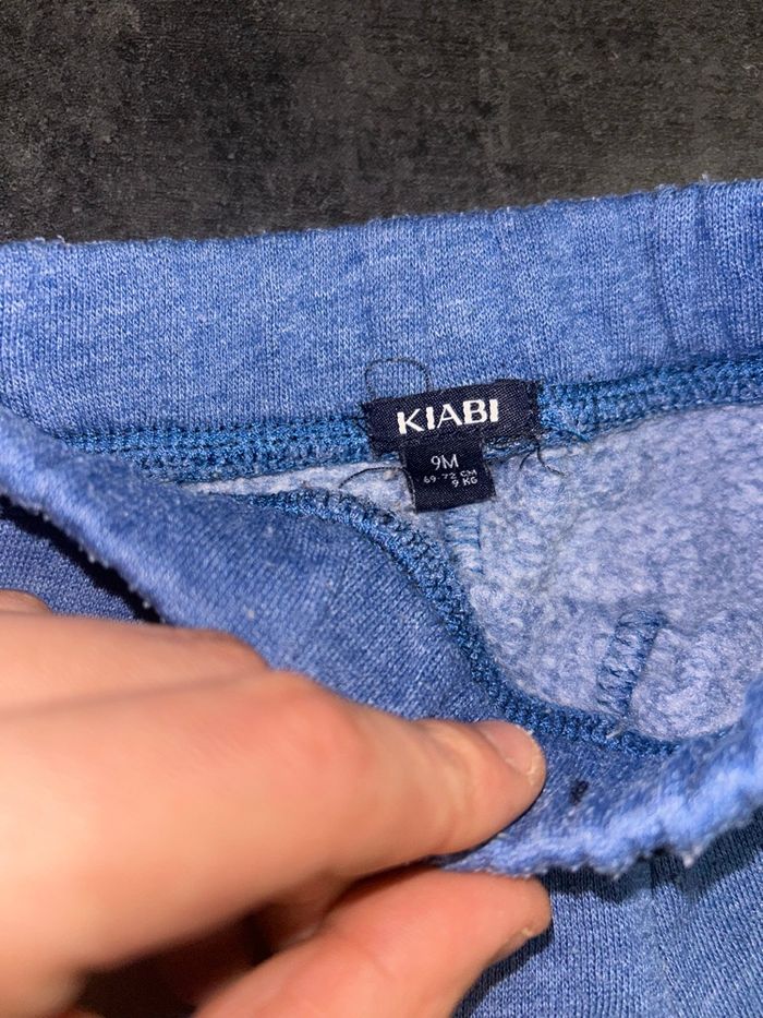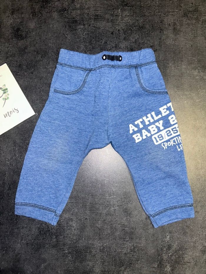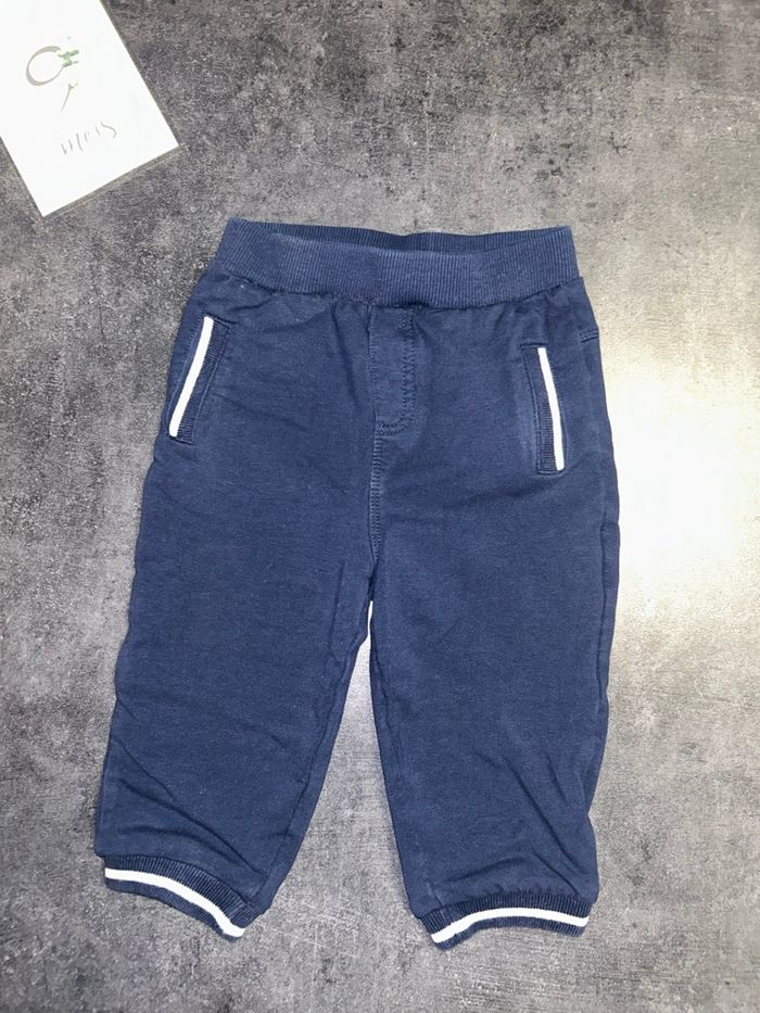 Lot de 2 jogging bébé N°1 : bleu avec inscriptions (un peut délavé) Marque kiabi N°2 : marine avec poches (neuf) Marque : orchestra Taille : 9 mois / 69-72 cm / 9 kg