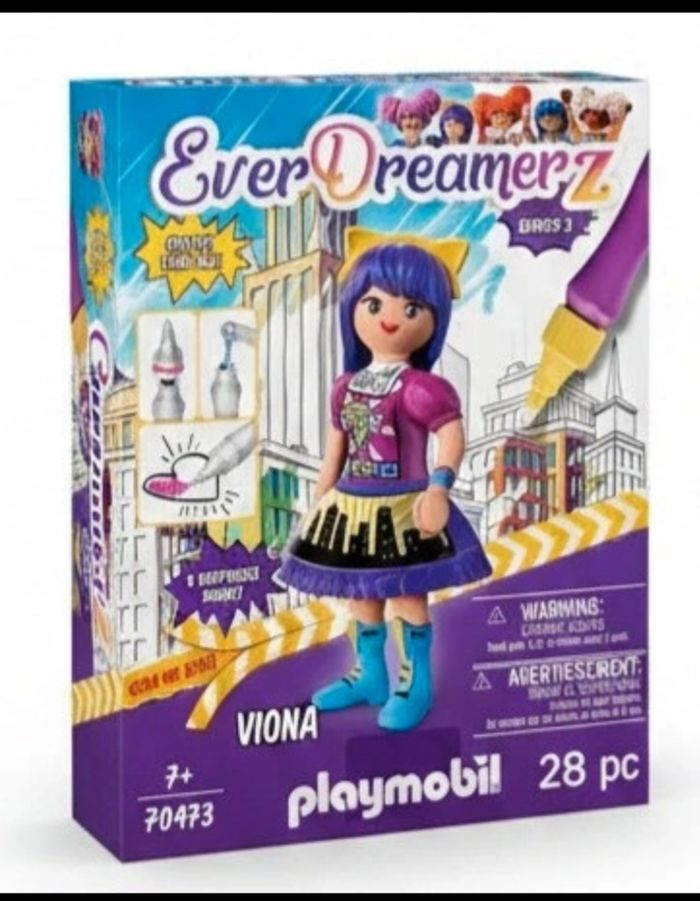 [NEUF / SCELLÉ] Playmobil EverDreamerz 70473 - Viona (Série 2) ​Description : À vendre, coffret Viona de la collection EverDreamerz (Série 2 - Comic World). Le produit est entièrement neuf, dans son emballage d'origine scellé (boîte jamais ouverte). ​Idéal pour offrir ou pour les collectionneurs exigeants ! ​Ce que contient ce coffret (28 pièces) : ​La figurine articulée de Viona (7,5 cm). ​8 surprises à découvrir au déballage : un animal magique, une carte de collection, un autocollant, une breloque, une perle, des accessoires, un bracelet. ​Le stylo à eau spécial : permet de colorier les motifs de la robe et du décor à l'infini (les couleurs apparaissent avec l'eau et disparaissent en séchant). ​👯‍♀️ Complétez la collection ! ​Viona cherche ses amies ! Retrouvez également dans ma vitrine ses deux copines (également disponibles) : ​🌸 Rosalie ​🍬 Clare (Clara) ​📦 Envoi rapide et soigné. N'hésitez pas à grouper vos achats pour réduire les frais de port !