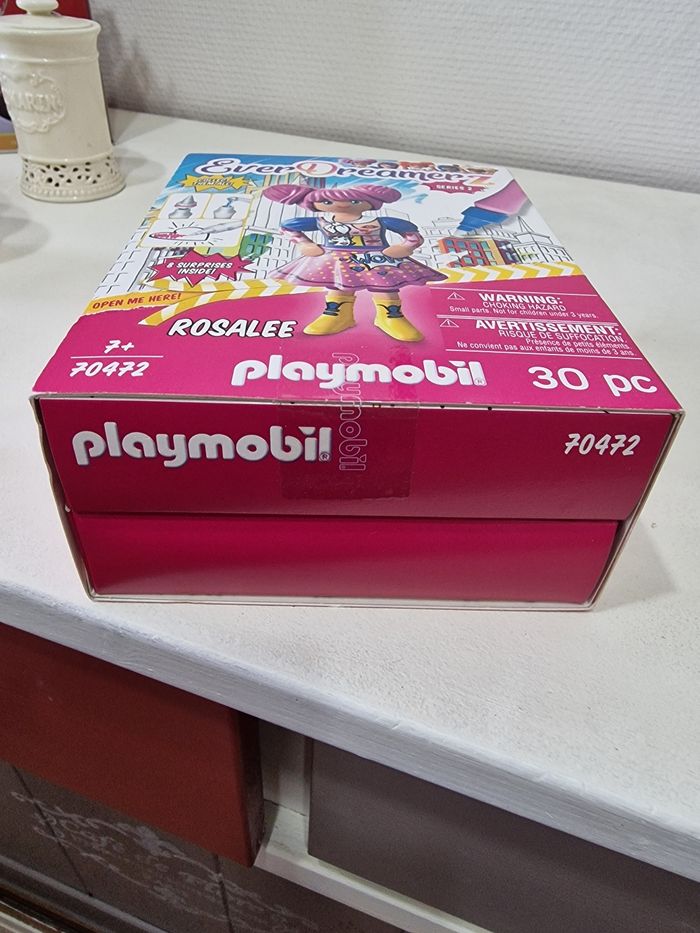 ​💎 Playmobil EverDreamerz : Rosalee (Série 2) - NEUF & SCELLÉ ​État : Neuf dans son emballage d'origine. La boîte n'a jamais été ouverte, les scellés Playmobil sont intacts (voir photos de détail). Idéal pour un cadeau ou pour un collectionneur exigeant. ​Description du set : Vends le coffret Rosalee (Réf. 70472), l'héroïne fan de bonbons de la Série 2. Un univers coloré et créatif avec 30 pièces à découvrir. ​Le coffret contient 8 surprises : ​✨ La figurine articulée de Rosalee. ​🐾 Son animal magique, une carte de collection et un autocollant. ​📿 Des accessoires pour créer un bracelet (perle, charme). ​💧 Exclusif : Un stylo à eau pour faire apparaître des motifs magiques sur ses vêtements ! ​👯‍♀️ Complétez la bande d'amies ! ​Rosalee ne voyage pas seule ! Pour les fans qui veulent réunir le groupe, je propose aussi dans ma vitrine : ​💙 Clare (l'intello passionnée de BD) ​💜 Fiona (la créative amoureuse des animaux) ​👉 Regardez mes autres annonces ! Possibilité de créer un lot avec Clara et Fiona pour regrouper les frais de port et obtenir un prix préférentiel. ​