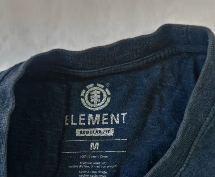 Bonjour, ce Shirt Element bleu marine est un basique efficace pour un look décontracté. Ce Tee sobre dispose d'un petit logo brodé sur la poitrine. Un essentiel du vestiaire skate et urbain. ​Fiche technique : ​Style : Skate / Streetwear ​Coupe : Droit (Regular Fit) ​Sexe : Homme / Men ​Taille : M (conforme) ​Mesures à plat : ​Aisselle : 49 cm ​Longueur : 66 cm ​Matière : 100% Coton ​État : Très bon état (sans trou ni tache). ​📦 Bloc Pro : Expédition 24/48h et réductions sur les lots. ​#Menswear #Homme #Skate #Streetwear #Element #Navy #Tshirt