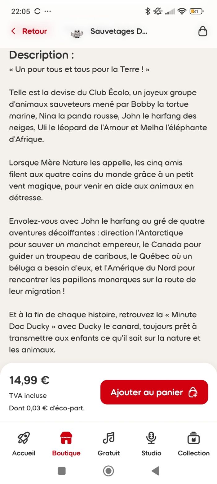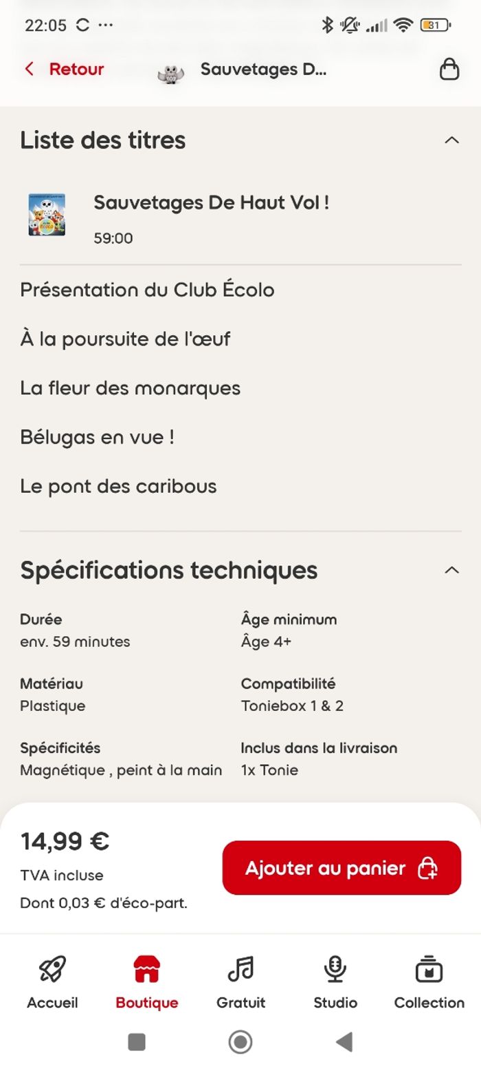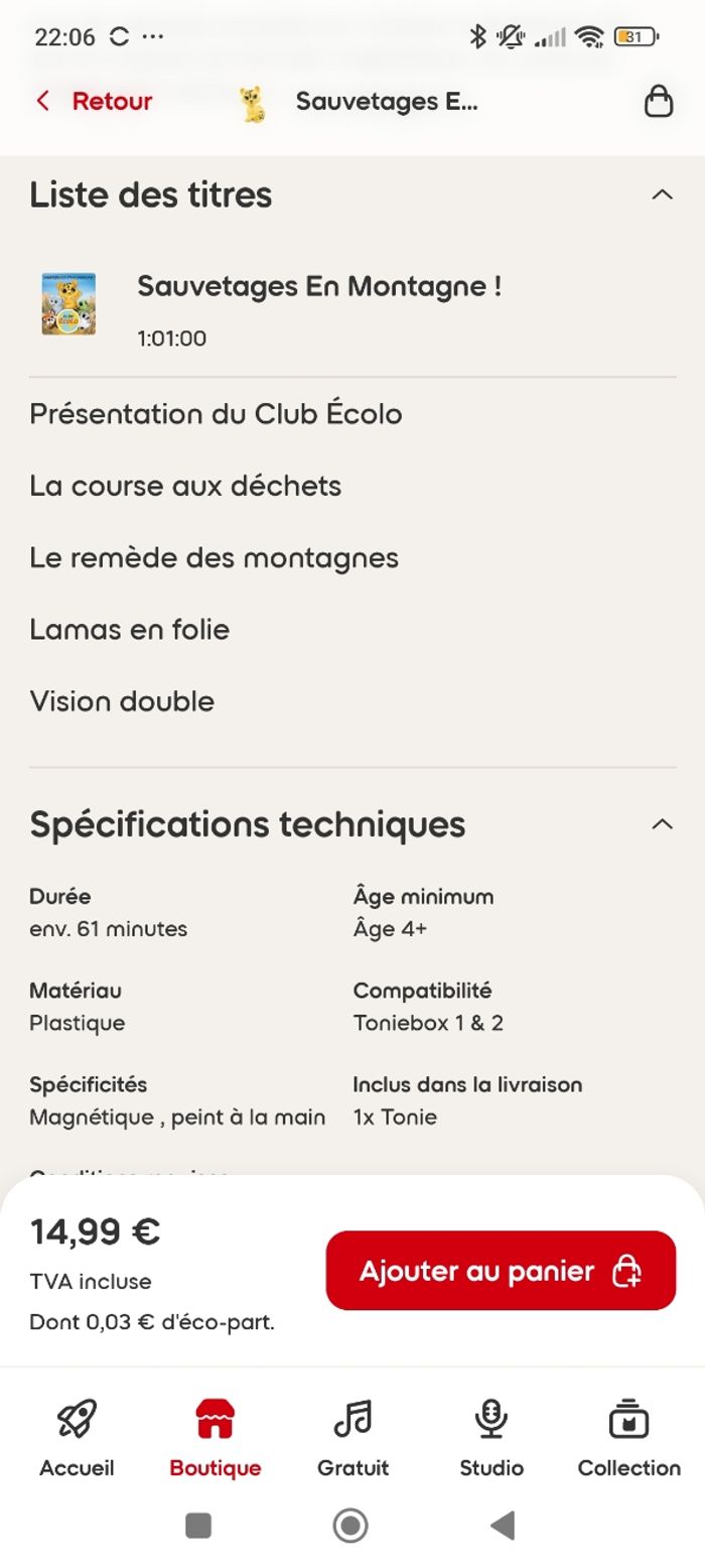 Vends 2 figurines neuves toujours emballées Sauvetage de haut vol avec John le Harfang 4 ans et plus, environ 60min 4 histoires plus la présentation du club Écolo Sauvetage en montagne avec Uli le léopard 4ans et plus, environ 60min 4 histoires plus la présentation du club écolo (cf photos) Possibilité de séparer le lot Envoi soigné