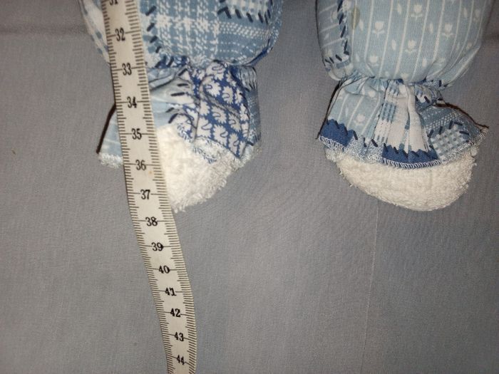 doudou peluche ours ourson blanc bleu  vintage ancien vers 1997 presque 30 ans d'occasion la marque ? peut-être Minouche Ajena 36 cm +/- de haut couleur bleu et blanc  tête tissu éponge bouclette - photo numéro 9