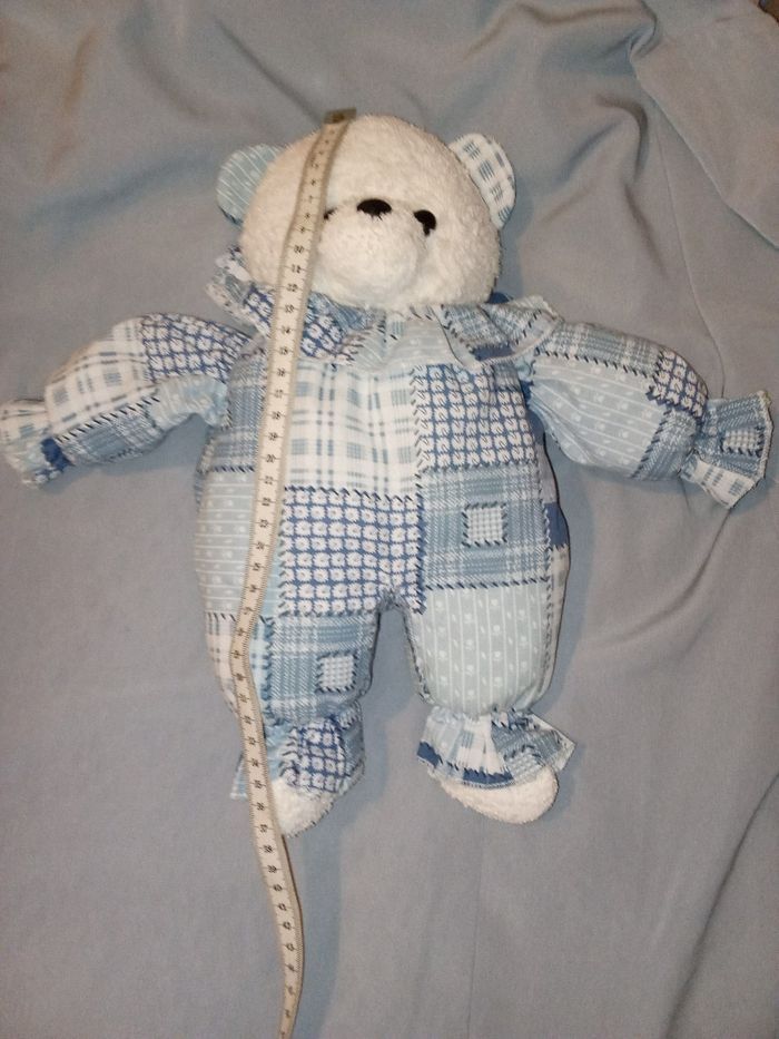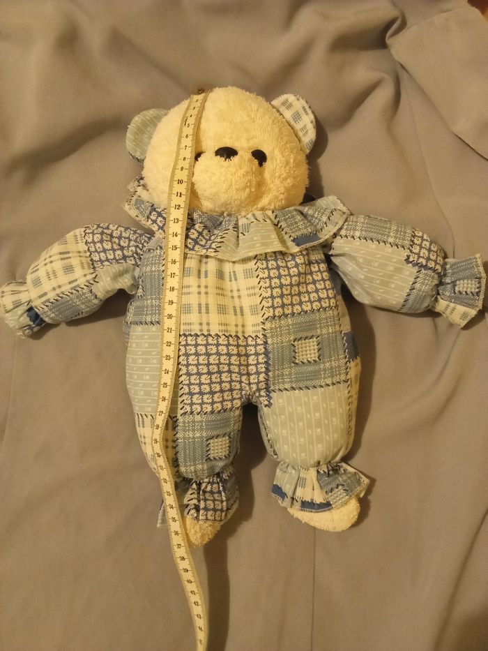 doudou peluche ours ourson blanc bleu  vintage ancien vers 1997 presque 30 ans d'occasion la marque ? peut-être Minouche Ajena 36 cm +/- de haut couleur bleu et blanc  tête tissu éponge bouclette - photo numéro 8