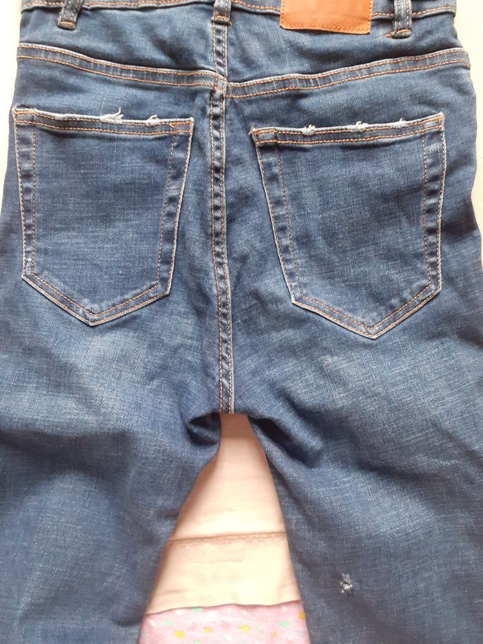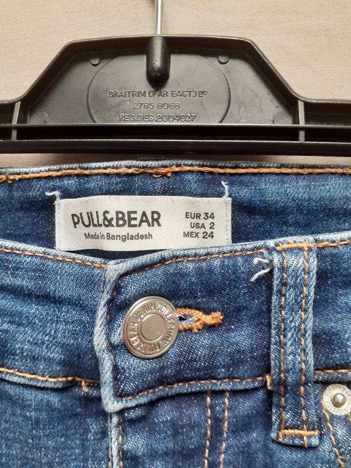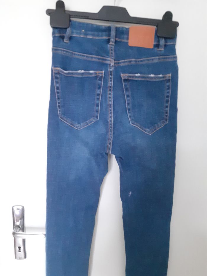Vends un jean slim skinny higth waist, marque Pull&Bear Denim, taille 34 (EUR). Longueur depuis l'entrejambe 69 cm. A noter : usé au niveau des 2 poches arrières et un petit trou sur l'arrière de la cuisse droite (voir photo).