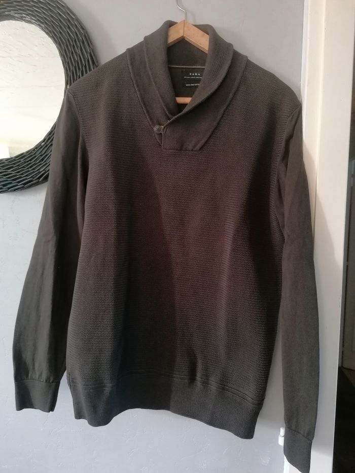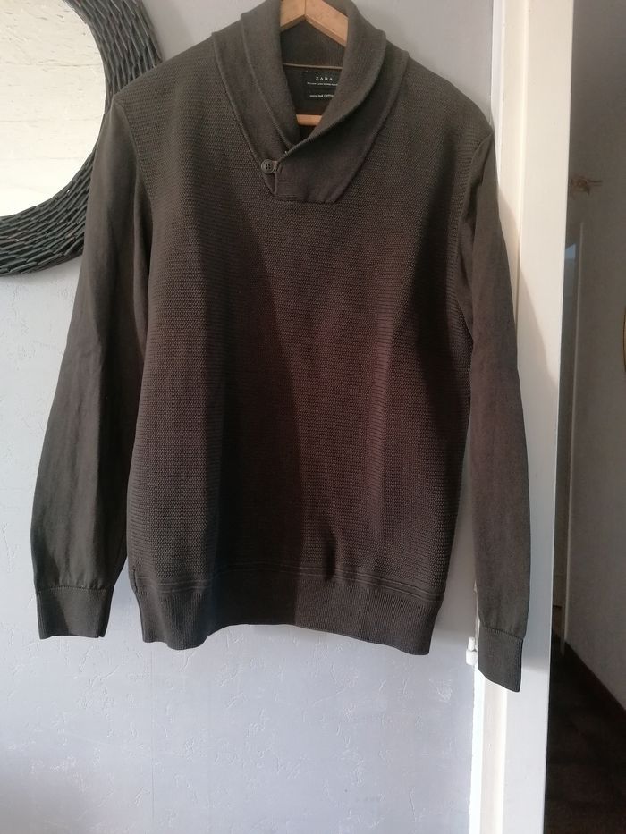 Pull homme Zara Taille m 📏 Dimension épaules à épaules 45cm Aisselles à aisselles 52cm Longueur totale 67 Coton Kaki foncé Col légèrement bouloché Bon état