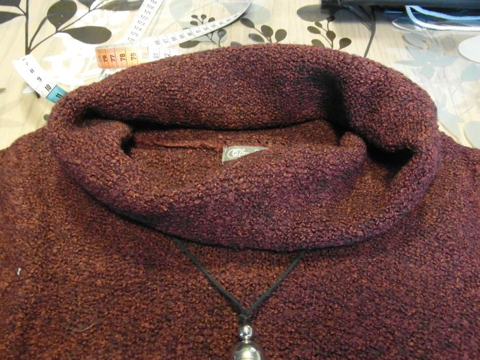 bordeaux T 42/44 (épaules 41 cm ; aisselles 44 cm ; longueur 63 cm) col châle avec collier déco bon état