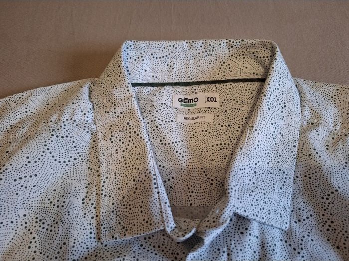 🏷️ Marque : Gemo 📏 Taille : 3XL 🎨 Couleur : Fond blanc, pois bleu 🧵 Matière : Coton ✂️ Coupe : Ample 🧼 État : Très bon. ✨ Précisions : Peu portée. Grande taille. 📦 Envoi rapide & article bien emballé !