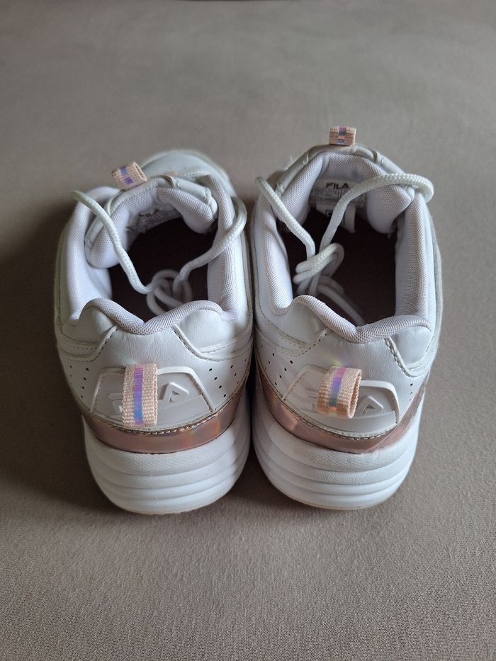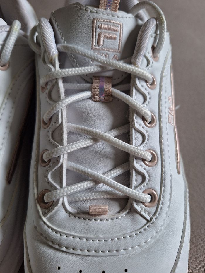 🏷️ Marque : Fila 📏 Taille : 38 🎨 Couleur : Blanche et déclinaison de rose 🧵 Matière : Cuir synthétique 🧼 État : Très bon état ✨ Précisions : Portées 2x. Parfaitement blanche, semelles et lacets non usés. 📦 Envoi rapide & article bien emballé !