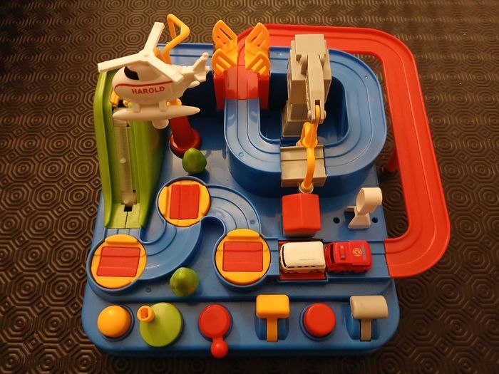 Mini Circuit voiture en très Bonne État. Avec 2 petite voiture incluse. PS : je Précise ke kand je l'avais acheter il y avait ke 2 petite voiture et non 4 comme indiquée sur l'image