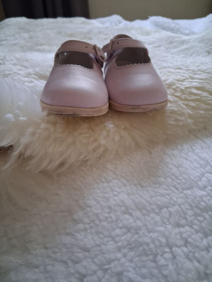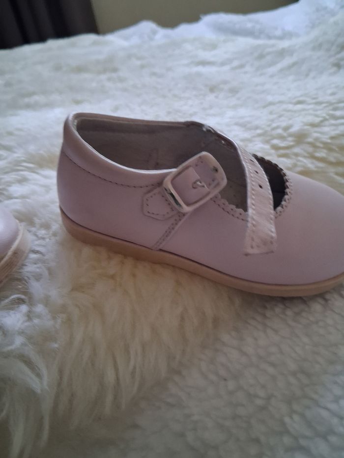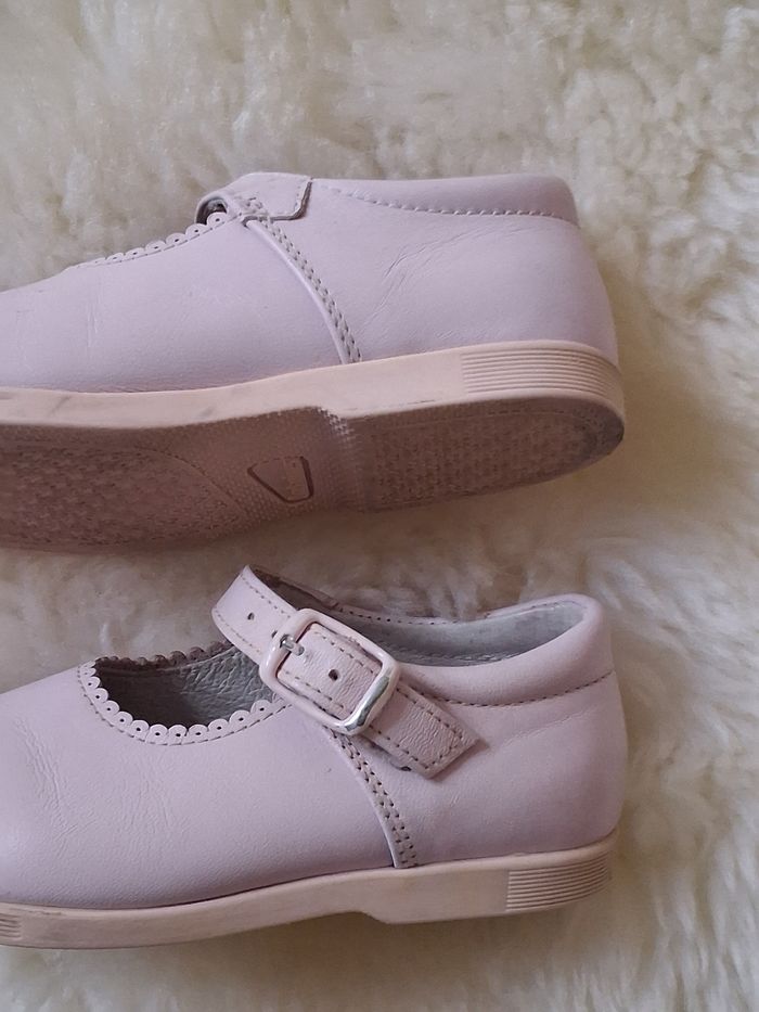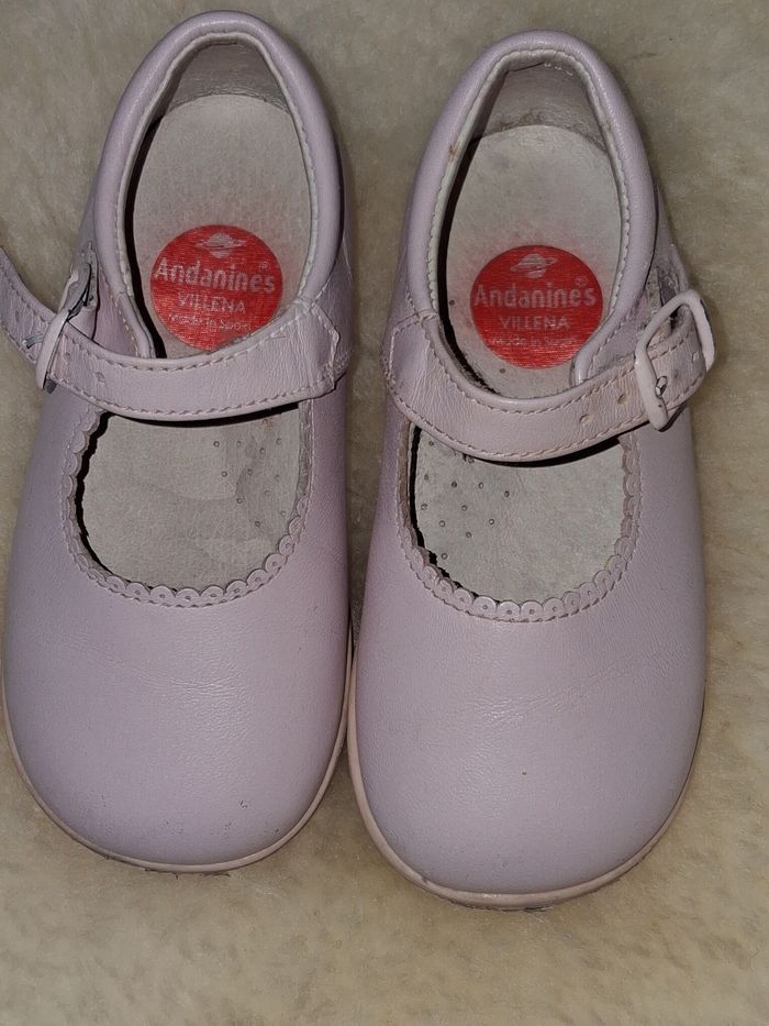 Chaussures bébé Andadines Villena type babies,couleurrosepale, taille 22 . Bon état. Cuire avec bordure découpé festons. Semelle intérieure perforé pour respirabilité . Petits signes d'usure dernières photos. Envoi rapide et soigné.