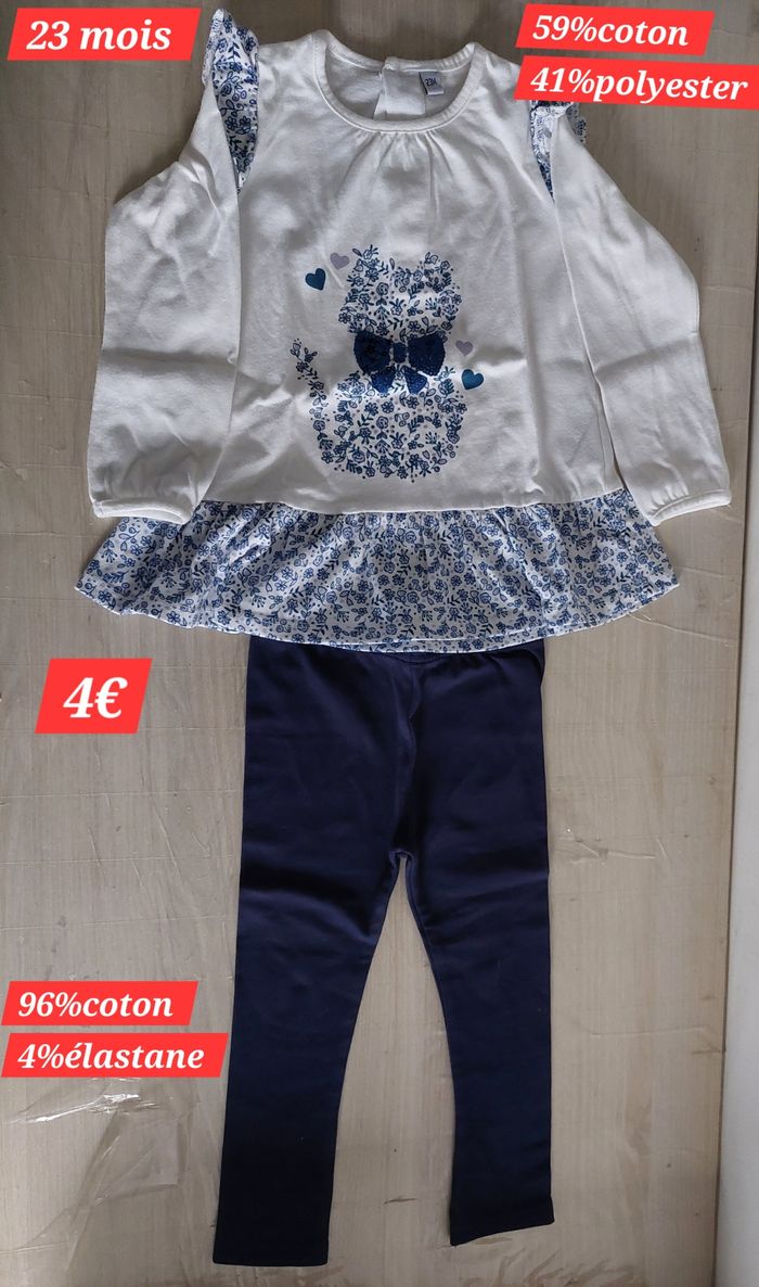 Vends Ensemble fille 23 mois Il est en très bon état et il a été mis Maison non fumeur Le prix d'achat est indiqué sur la photo 1