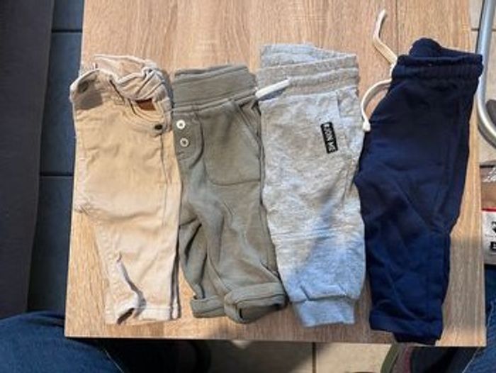 Lot de 4 pantalons 3 joggings 1 verts, 1 gris et 1 bleu marine 1 jeans beige Très bon état