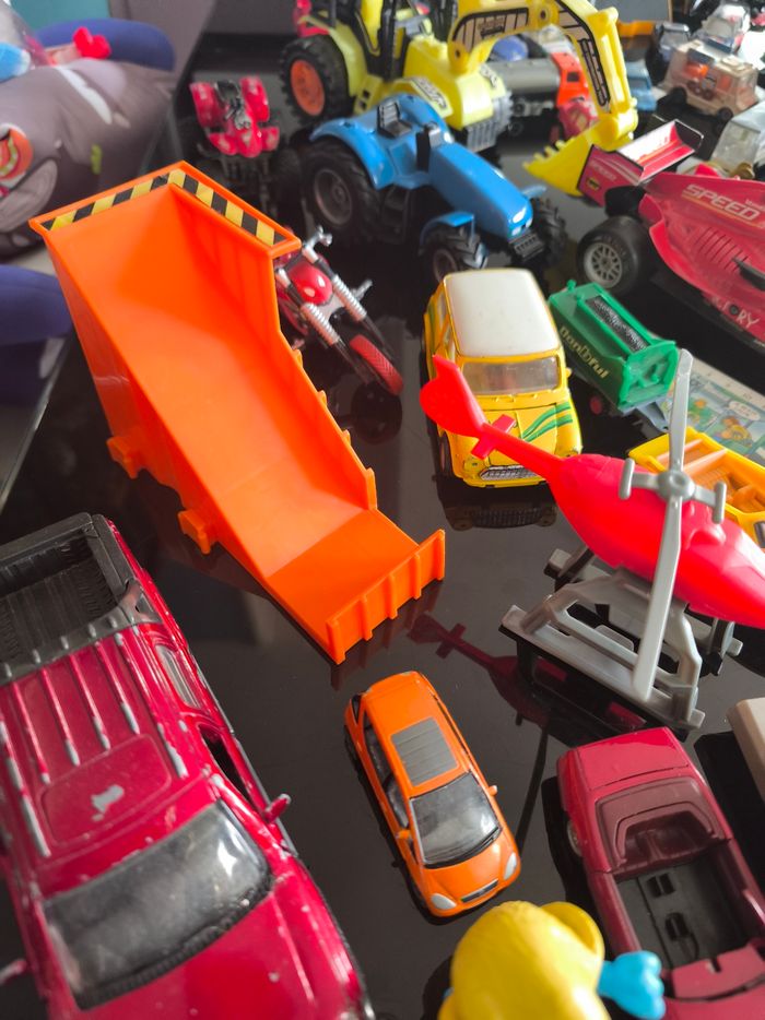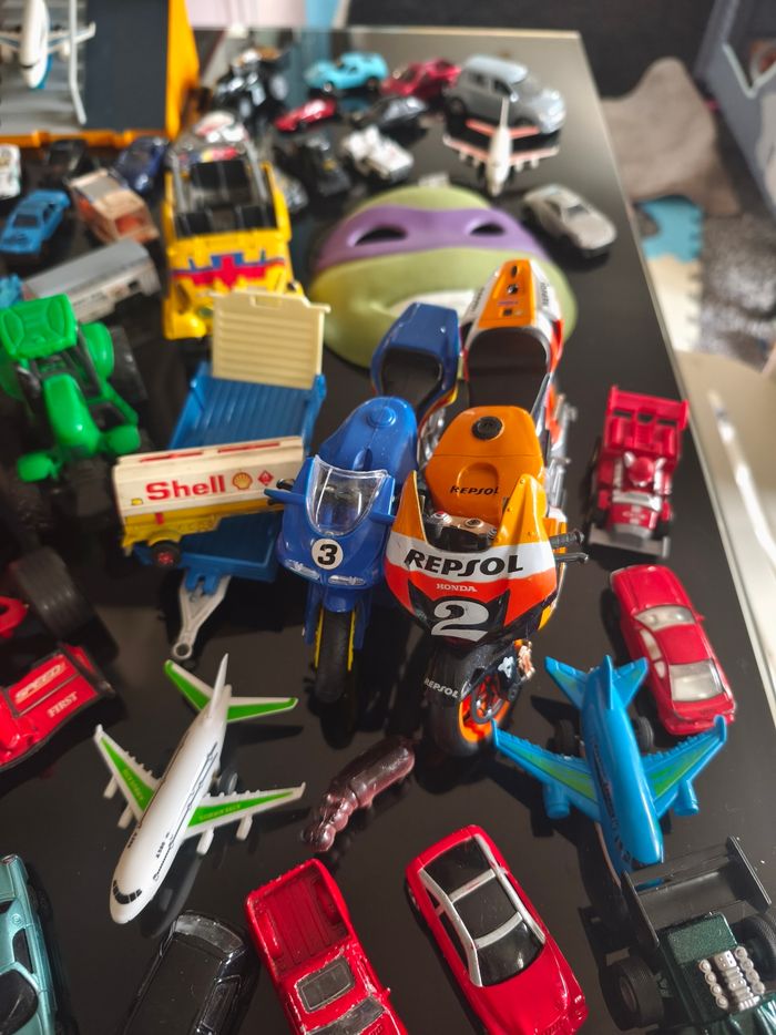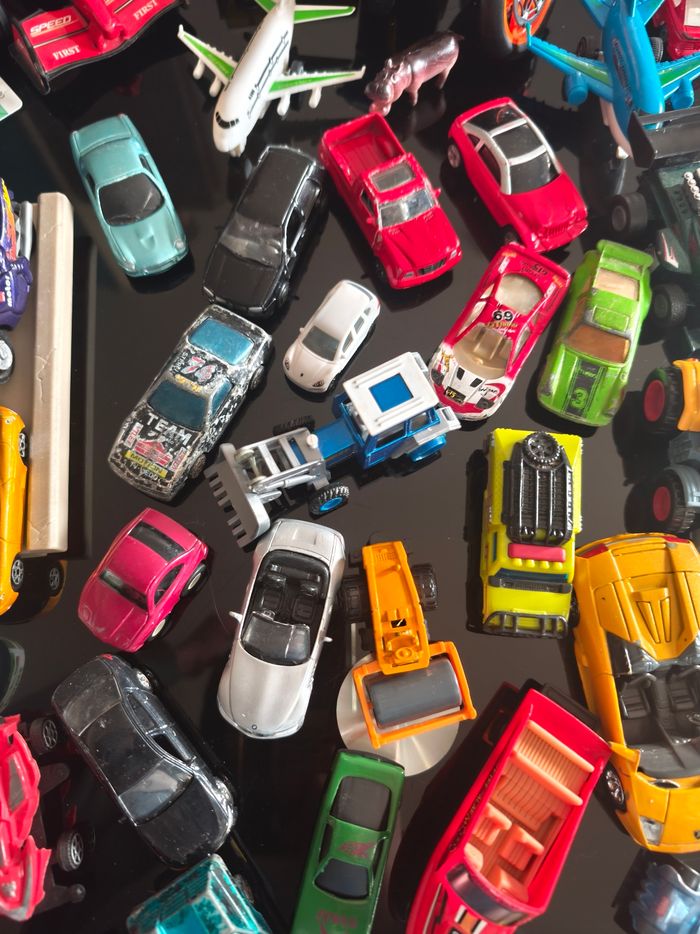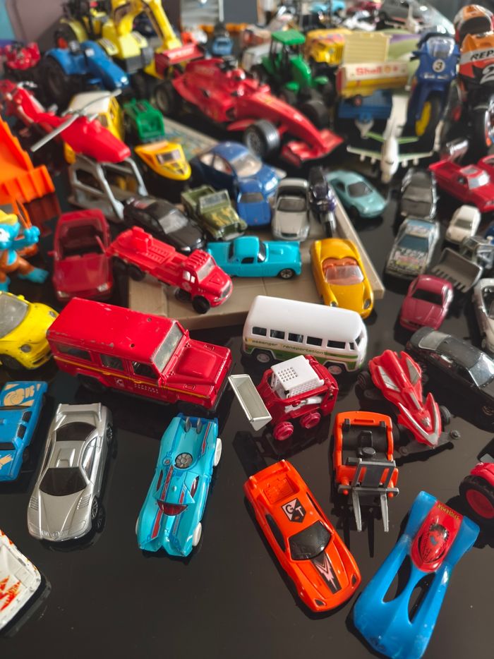 Ce lot contient : Énormément de voitures toutes marques. Et d'autres choses, masque tortue ninja... Dans ce lot il y a dû très bon état, bon état et satisfaisant. Peut servir en intérieur, extérieur ou collection . Vendu comme sur les photos.