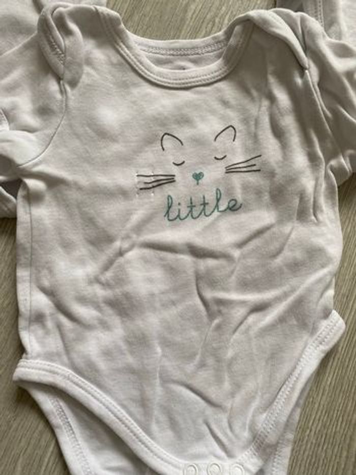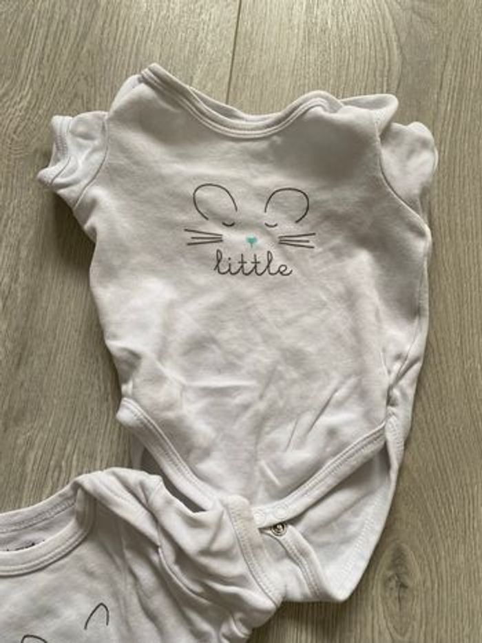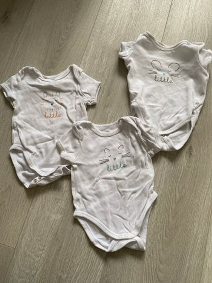Lot de 3 bodies manches courtes Très bon état Taille 3 mois mais plutôt petit, conviendrait pour du 1 mois