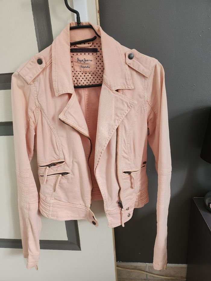 Veste en Jean de chez Pepe Jean rose pâle Taille Xs Usée au niveau des manches d'où le prix voir photo Envoi rapide et soigné 👍 Possibilité de faire des lots pour bénéficier de réductions 🍀