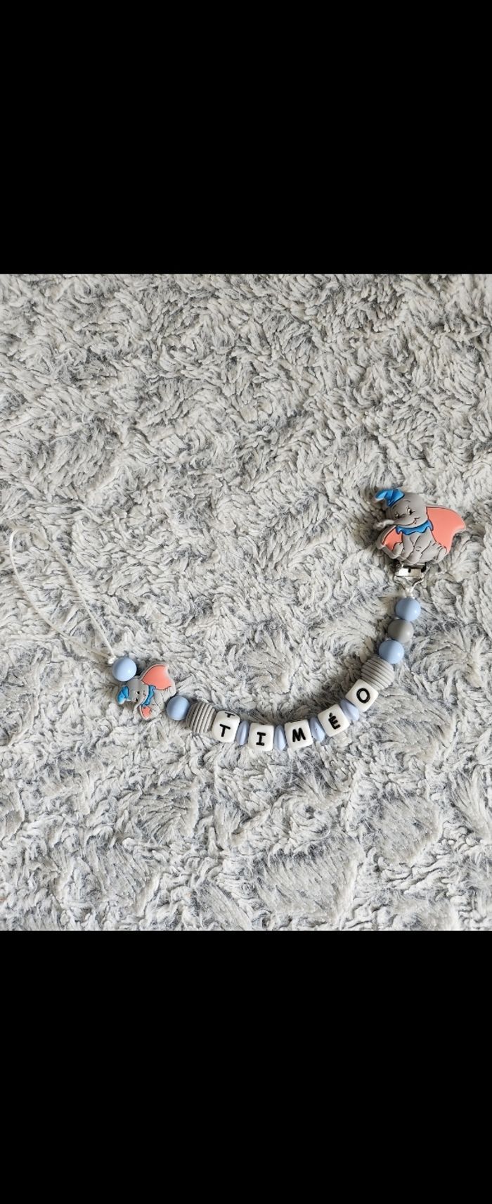Attache tétine dumbo Choix du prénom et couleurs Plusieurs modèles et thème disponible Envoi de photo pour une création unique et sur demande à votre goût 100% sécurisé et aux normes Envoi rapide et soigné 👍 Créatrice déclarée