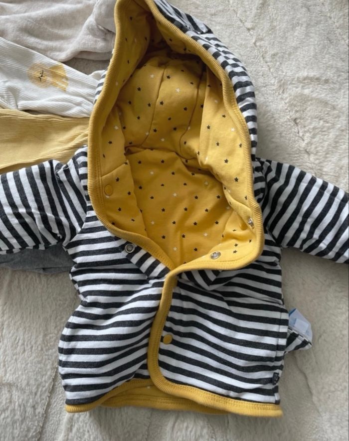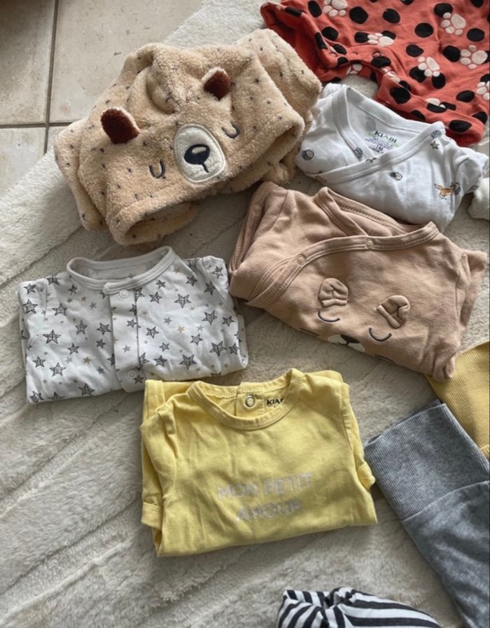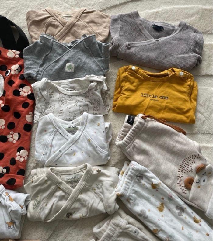 Parfait état Lot de 20 pièces comprenant 1 barboteuse 1 t-shirt manches longue 1 pantalon chaud 1 combinaison chaude 5 pantalon avec pieds 3 pyjamas 6 body 1 gilet 1 veste chaude réversible #lisasbr_1mois #bebegarcon #lotbebegarçon #lotgarcon1mois #bodie1mois