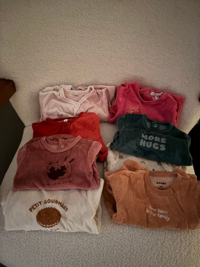 Lot de 8 pyjamas en velours 1 mois très bon état