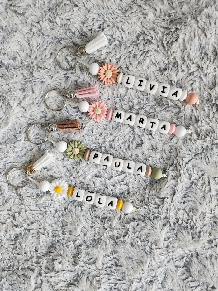 Porte clé prénom Large choix de couleurs et motifs 8 euros par prénom Envoi rapide et soigné 🌸 N'hésitez pas à m'écrire pour plus d'informations 🥰 #porteclé #portecleprenom #portecletrousse #troussedecole #cadeaupetitprix