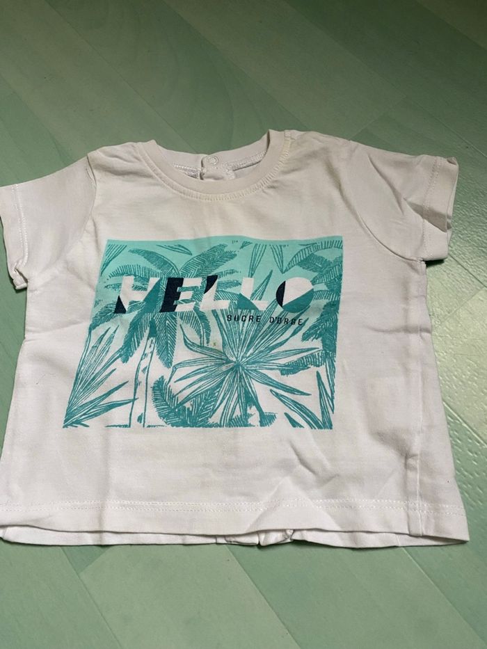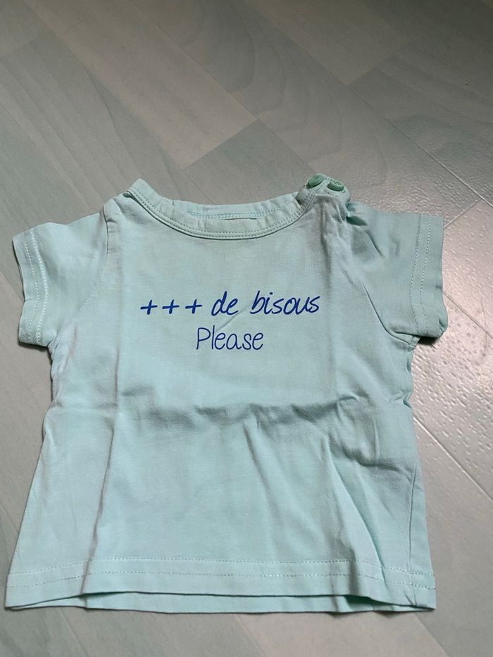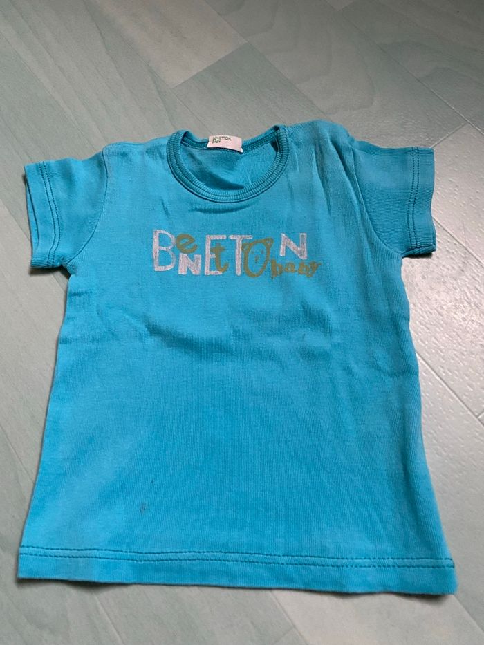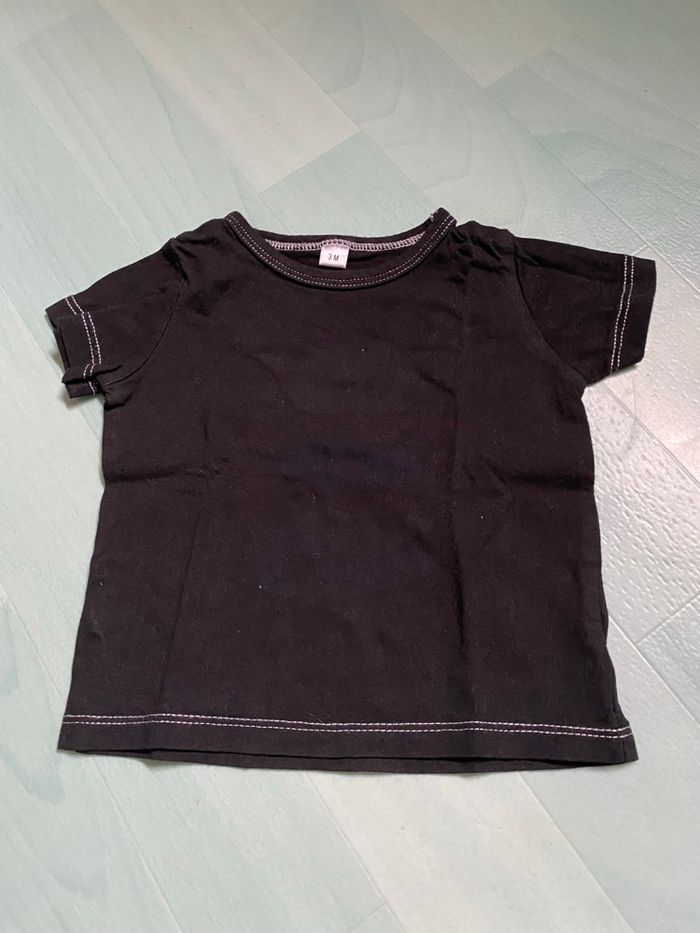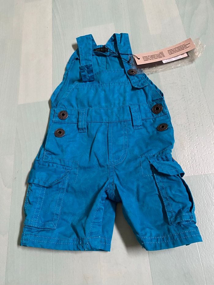 Lot de vêtements , 3 mois 1 salopette courte « IKkS », pressions a l’entrejambe et 4 tee shirts: Tape à l’œil, sucré d’orge, beneton , et le noir sans marque Le tout en très bon état