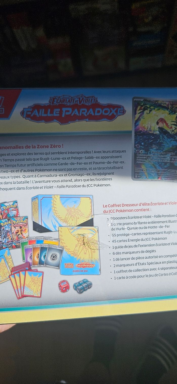 Bonjour je vend cette etb ev4 faille paradoxe rugit lune avec défaut scellage sur la face arrière voir dernière photo. ! La préparation du colis sera filmer et pris en photo, puis vous sera envoyé, pour permettre une meilleure réception! Dracaufeu florizarre tortank booster demi display coffret .dresseur d'élite wizard 1999 setde base ,jungle fossile neo genesis revelation destiny ex xv gx star item scelle. pikachu collection carte. lugiapokemon.fragénérationrupture,turbo origines antiques primo choc ciel,rugissant offensive vapeur platinum diamant et perle gardiens de cristal emeraude etb destinées radieuses occultes niveau mewto, mew full art magic sleeves toploader ultra pro holographique reverse shiny vmaxgold secret rare commune. classeurpochettes tygnon épée bouclier soleil lune. premiere mega team rocket salameche carapuce .reshiram amazing noir blanc coffret tripack elite trainer japonais français pokebox pins platine duo choc remix vert blou rouge rainbow dresseur,energie pca psa parfait celebi jirachi leviator saphir rubis switch de emeraude obscur brillant reptincel boite jeton codes online magma aube majestueuse tresors, mysterieux legendes regne glace, dragon cristal xy evolutions nostenfer mini tin evolution celeste EB7,gold secrete rayquaza .givrali phyllali aquali evoli voltali nymphali noctali artset celebration 25 ans pokemon tin origine perdu perdue EB11 EB12,tempête argentée zenith suprême pca psaevtag coffret sv8a evolutionprismatiqueÉtincelles .Déferlantes ev3.5 ev7 ev1 ev2 ev3 ev4 ev5ev6.5 ev8 ev8.5 ev9 ev10 ev10.5 flamme blanche foudre noir.