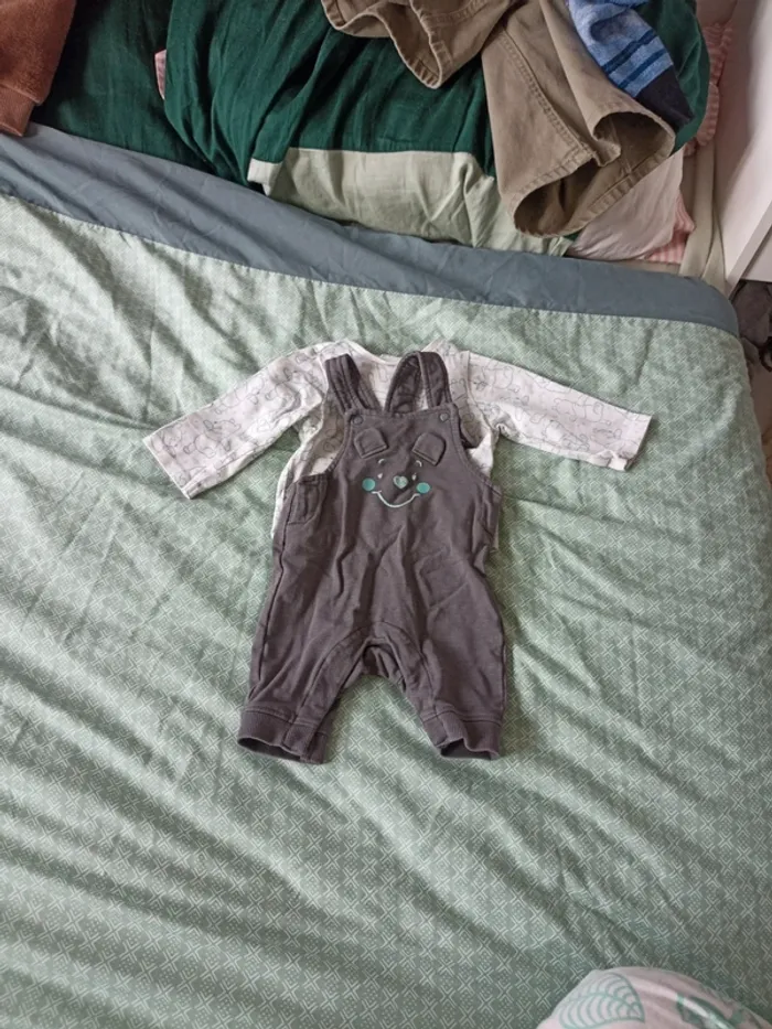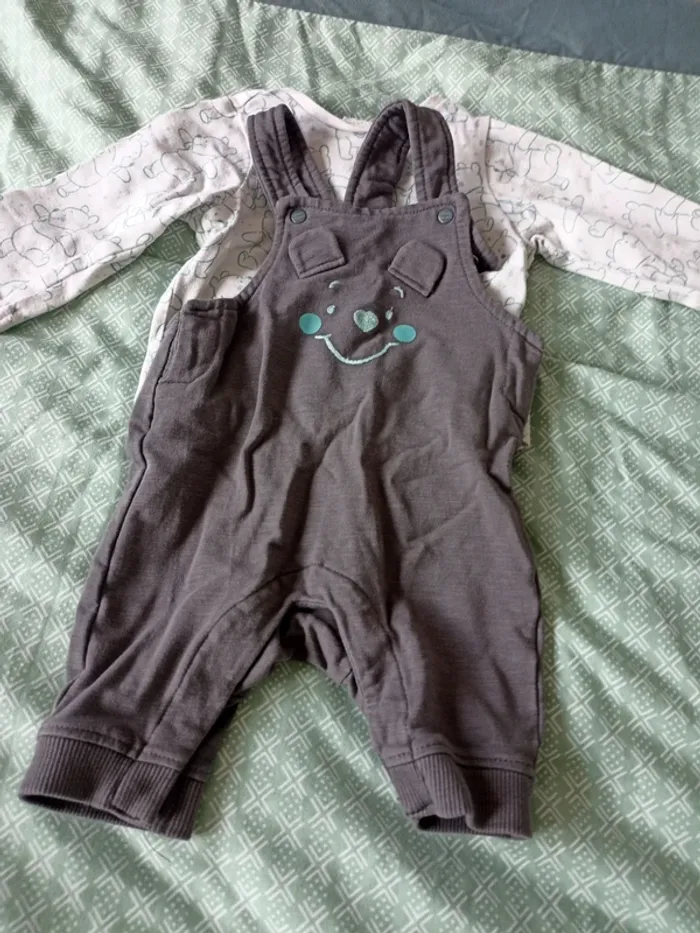 Bonjour, Je vend un ensemble t-shirt manche longue et salopette. Taille 1 mois. Marque Orchestra. Je fais du tri dans les affaires de ma fille, je vend principalement du 0-12 mois. #Orchestra #bebe1mois