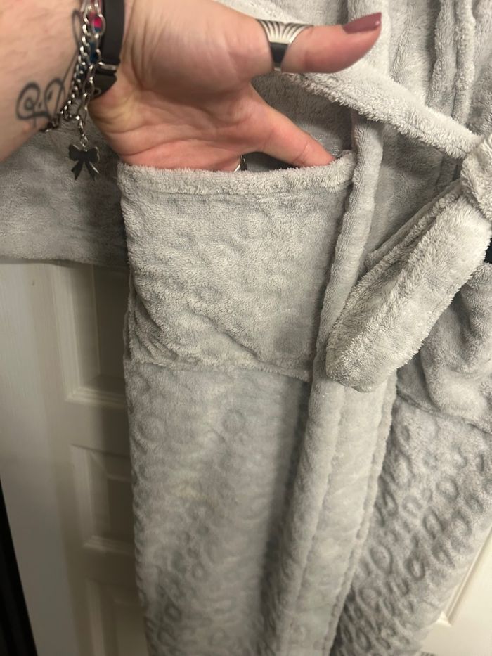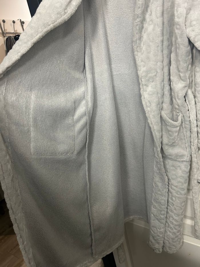 Peignoir tout doux / polaire / pilou pilou gris perle avec ceinture / poches sur le devant Taille M État nickel