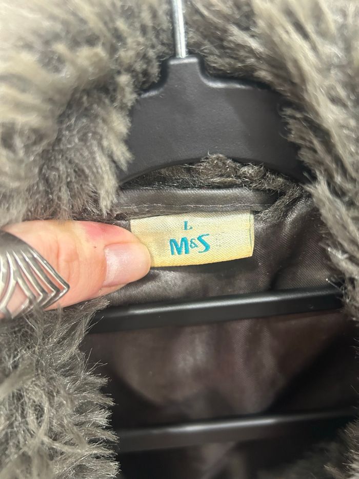 Veste sans manches grise en fausse fourrure / moumoute M&S mode Poches de chaque côté / se ferme par crochets Taille L État nickel