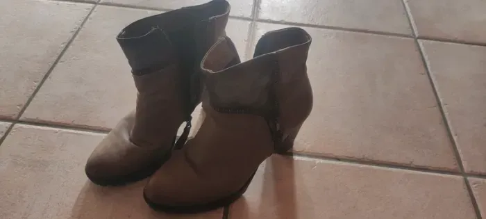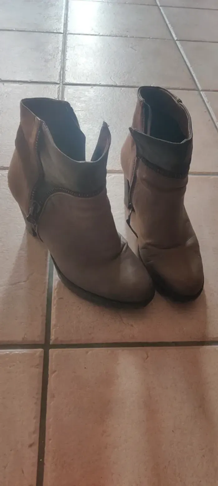 Bottines à talons MJUS portées mais en bon état, ont un peu pris l'eau (voir dernière photo) mais rattrapable