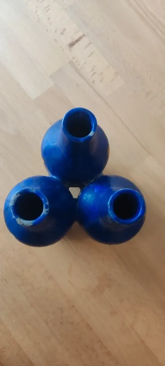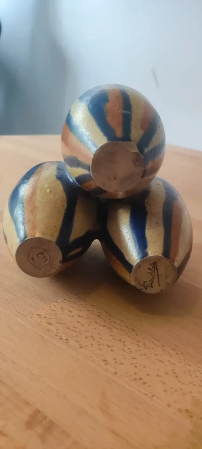 Vase triple en grès flammé art déco signé Jean-Bordelais 18cm de hauteur