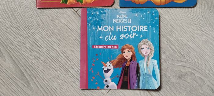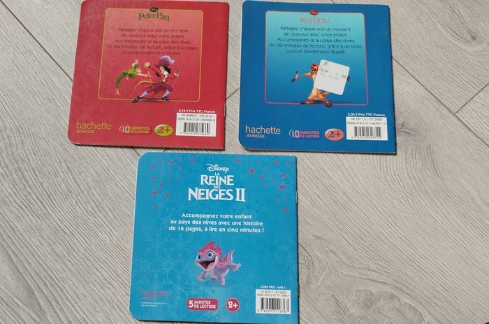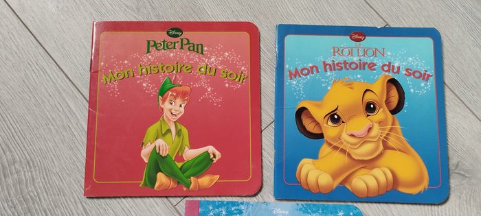 Bonjour, Je vends ce lot de 3 livres mes histoires du soir Disney avec Peter pan, la reine des neiges et le roi lion en bon état, comporte quelques traces d'usure sur les couvertures voir photo