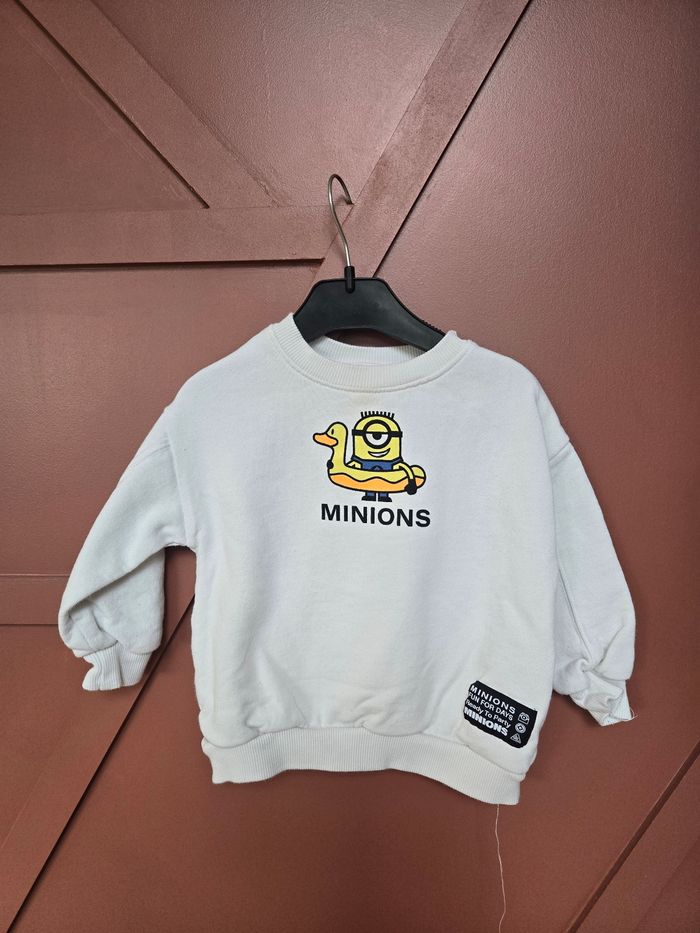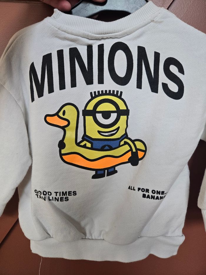 #18moisgarçon_tatianaalena #24moisgarçon_tatianaalena Joli sweat blanc Marque : Minions x zara Taille 📏 : 1 an 1/2 ( 86 cm ) État 🏷️: Tres bon etat Couleur 🎨 : Blanc / Jaune
