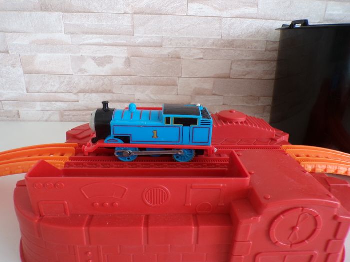 Circuit de train - Thomas et ses amis, Thomas and friends, Thomas & ses amis, tren, trenini, trein, zug en très bon état, vendu avec un pont amovible de marque inconnue. Deux rails pont avec 1 échangeur intégrés au circuit afin de construire différents circuits. Le circuit s'associe à tous les autres circuits Track Master. La locomotive Thomas fonctionne parfaitement, elle est en bon état. La boite de rangement peux compléter le circuit avec d'autres rails, aussi bien le couvercle que le bac afin de faire une grande descente de chaque côtés. Pratique pour se déplacer...ou partir en voyage... D'autres photos peuvent être demandées car limité sur le site. Mon dressing est trié par catégories, tailles et saisons pour les vêtements. Cliquez sur mes liens # qui sont dans l'annonce. #sonia222404 #jouetenfantsonia222404 #trainthomasonia222404