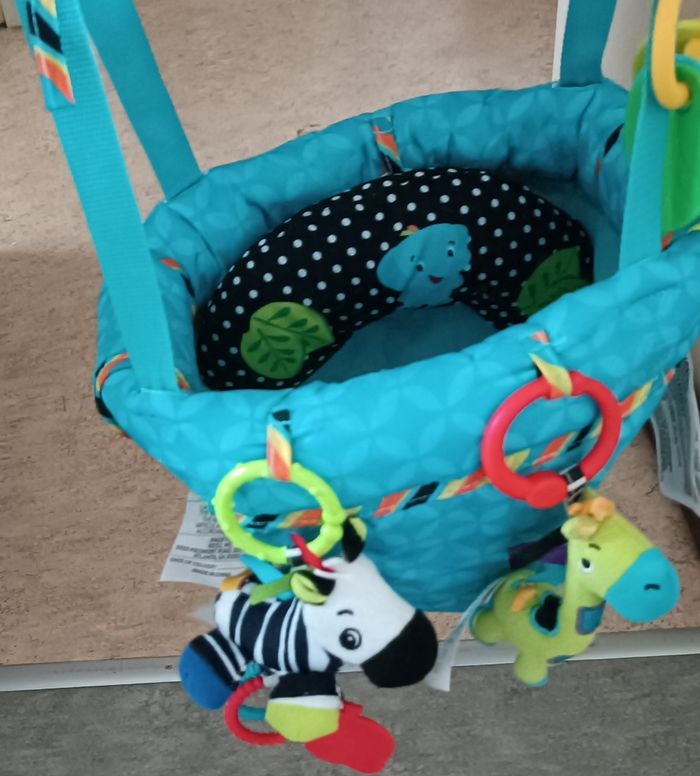 A vendre sauteur bébé a partir de 6 mois mon fils a était 2 Foix dedans réglable sécuriser également cousin pour le dos jouet