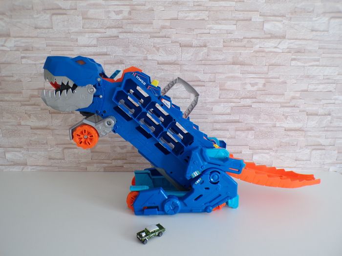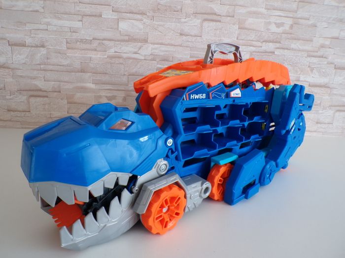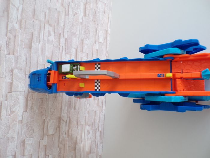Camion et Dino Piste de Course - Transporteur géant T-Rex - Hot Wheels - Hotwheels, en très bon état, 2 petites traces en photos rien de méchant. Les effets sonore et lumineux fonctionnent parfaitement. Le camion avale les voitures en le faisant rouler, en abaissant sa queue qui sert de piste, le camion se transforme en dinosaure T-rex. Tout fonctionne parfaitement. Je donne la petite voiture. D'autres photos sont disponible sur demande car limité sur le site. Mon dressing est trié par catégories, tailles et saisons pour les vêtements. Cliquez sur mes liens # qui sont dans l'annonce. #sonia222404 #jouetenfantsonia222404 #hotwheelsjamsonia222404