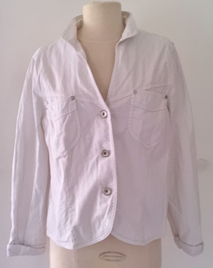 Veste femme taille L blanc - Manche longue - Bon état 100% coton - photo numéro 2