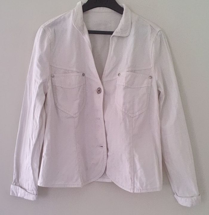 Veste femme taille L blanc - Manche longue - Bon état 100% coton - photo numéro 1
