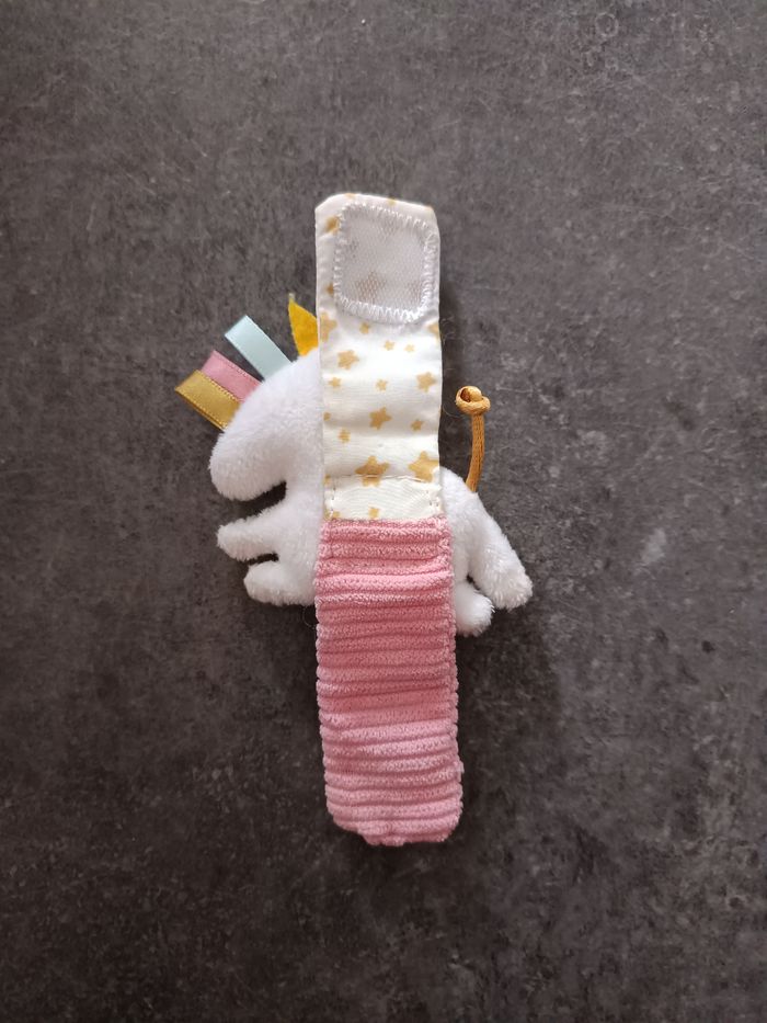 Bracelet en peluche licorne Fait du bruit lorsque bébé bouge son bras avec le bracelet à son poignet Très bon état, très peu utilisé !
