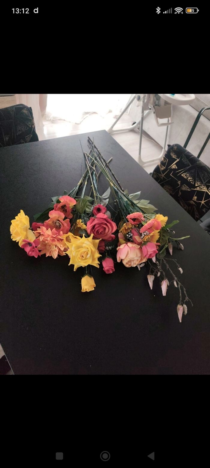 Lot de fleurs artificielles Achetées a la foire fouille (entre 2 et 5€ la tige) Utilisées en décoration uniquement 19 tiges Très belles couleurs (orange, jaune, rouge) Tulipes, roses, pivoine, etc... Une rose rouge tachée (voir dernière photo) #alyssiaraccessoires