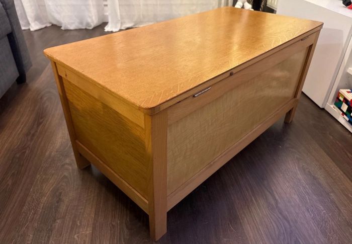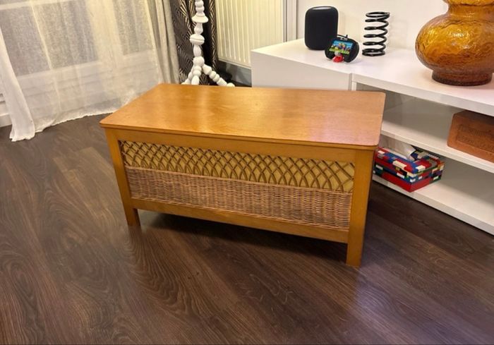 Banc Coffre à jouets en bois et rotin vintage année 60 - bon état  - photo numéro 1